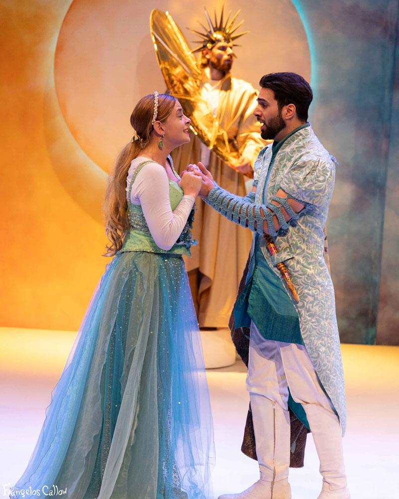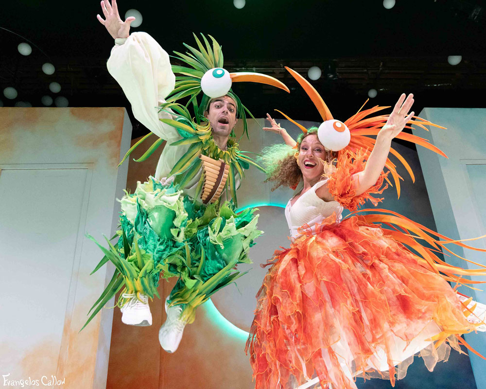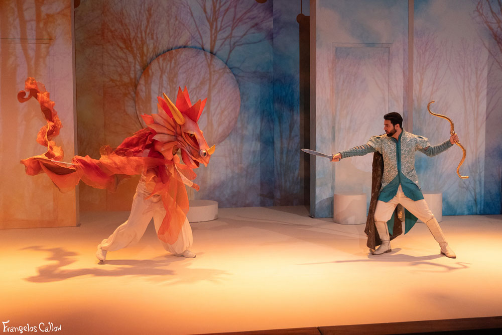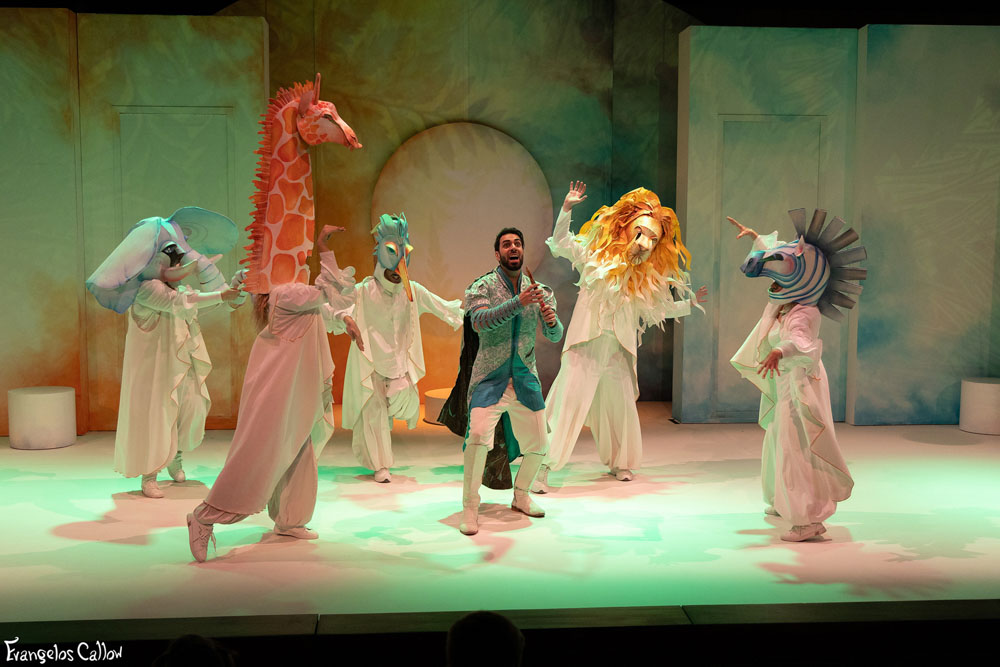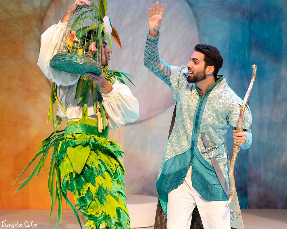 Ο πρίγκιπας Ταμίνο -σύμβολο της αρετής και της αγάπης, βρίσκει στο πρόσωπο της Παμίνας το ιδανικό ταίρι. Όμως το ζευγάρι θα περάσει από πολλές δοκιμασίες. Με όπλο την αγάπη, οι ήρωές μας θα νικήσουν και θα ενωθούν για πάντα. Μαζί τους ο Παπαγκένο, ένας χαριτωμένος παραμυθένιος ήρωας που με τις σκανδαλιές του θα χαρίσει στα παιδιά στιγμές χαράς και γέλιου. Το έργο τελειώνοντας βρίσκει τους δυο εχθρούς, βασίλισσα της νύχτας και βασιλιά της μέρας, ενωμένους. Το καλό θα νικήσει το κακό και θα απλωθεί σ’ όλη τη γη.
